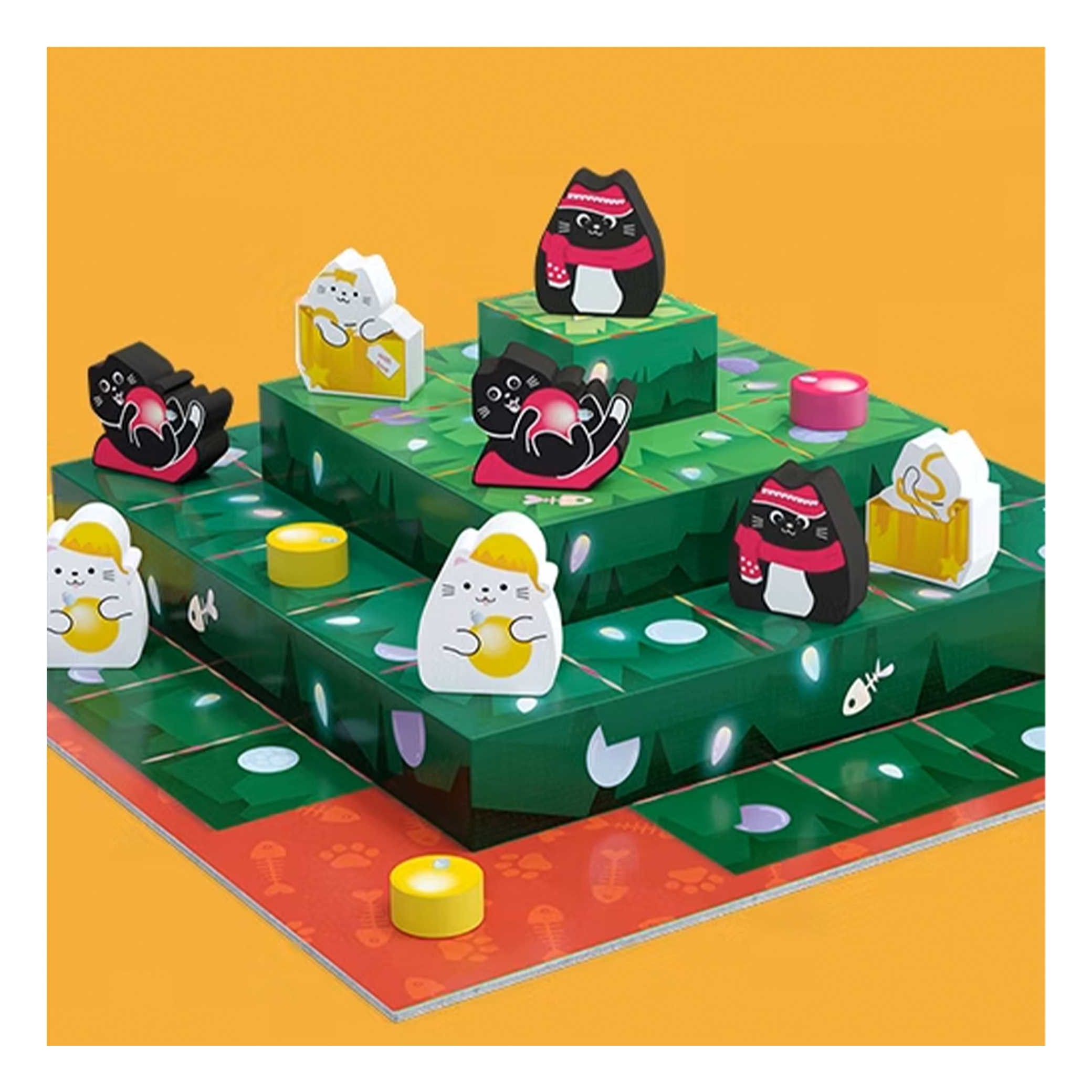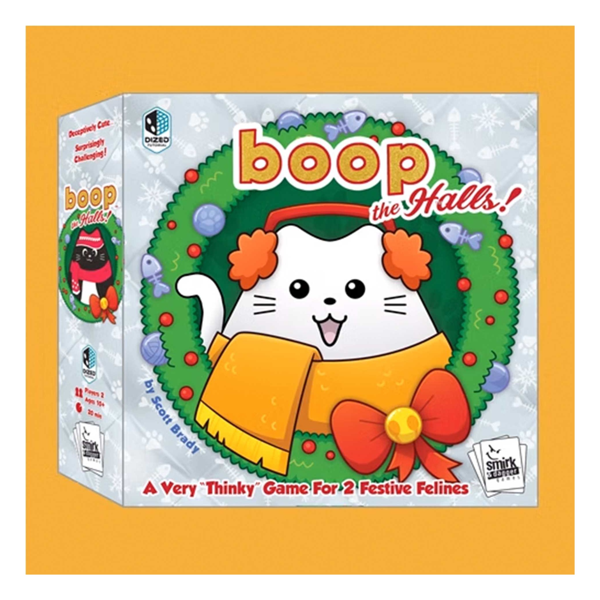 The hoomans are hanging ornaments on the highest boughs of the tree, but those clever cats are leaping up and boopin’ them right off. You can win “nice” by lining up three cats or “naughty” by knocking off three of your opponent’s ornaments!