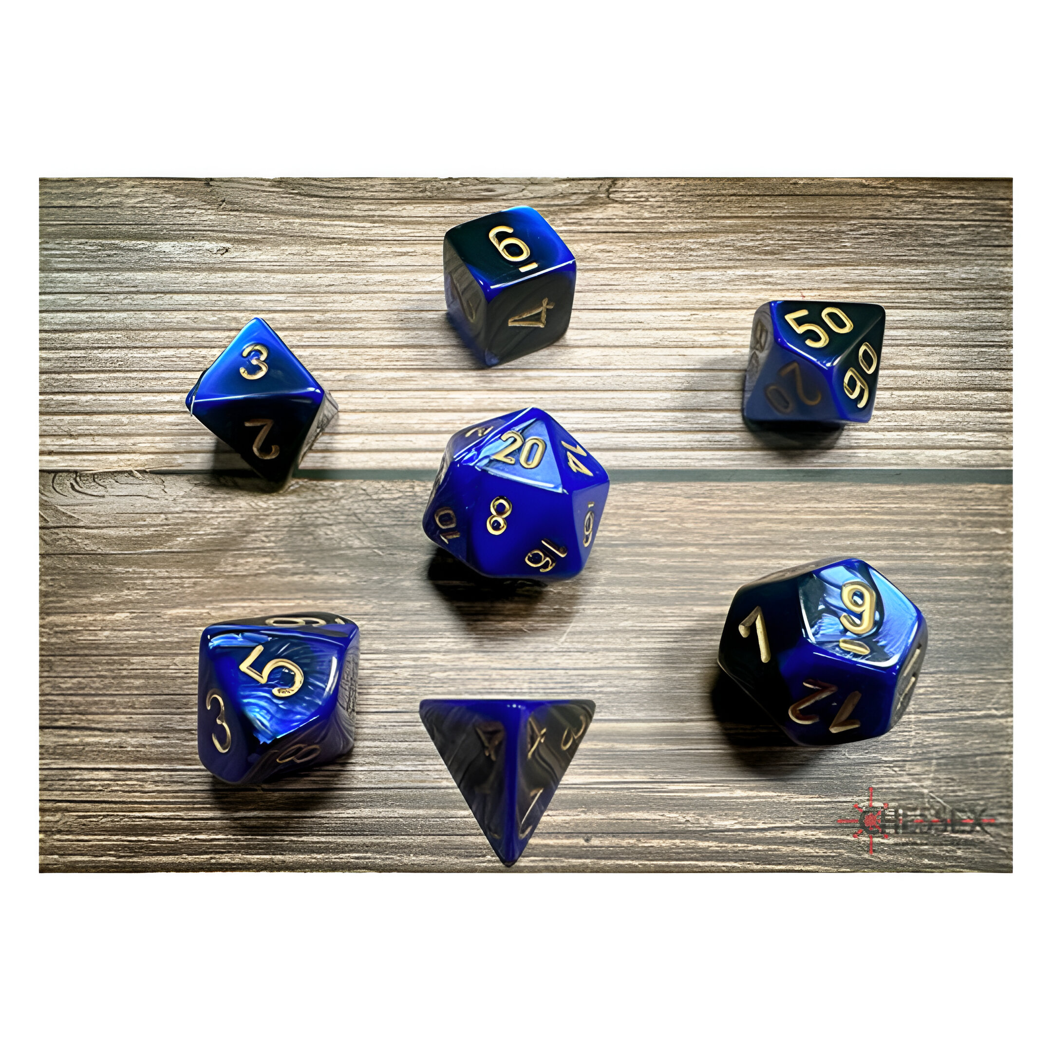 Chessex – Gemini Polyhedral 7 Dice Set – Black-Blue w/Gold