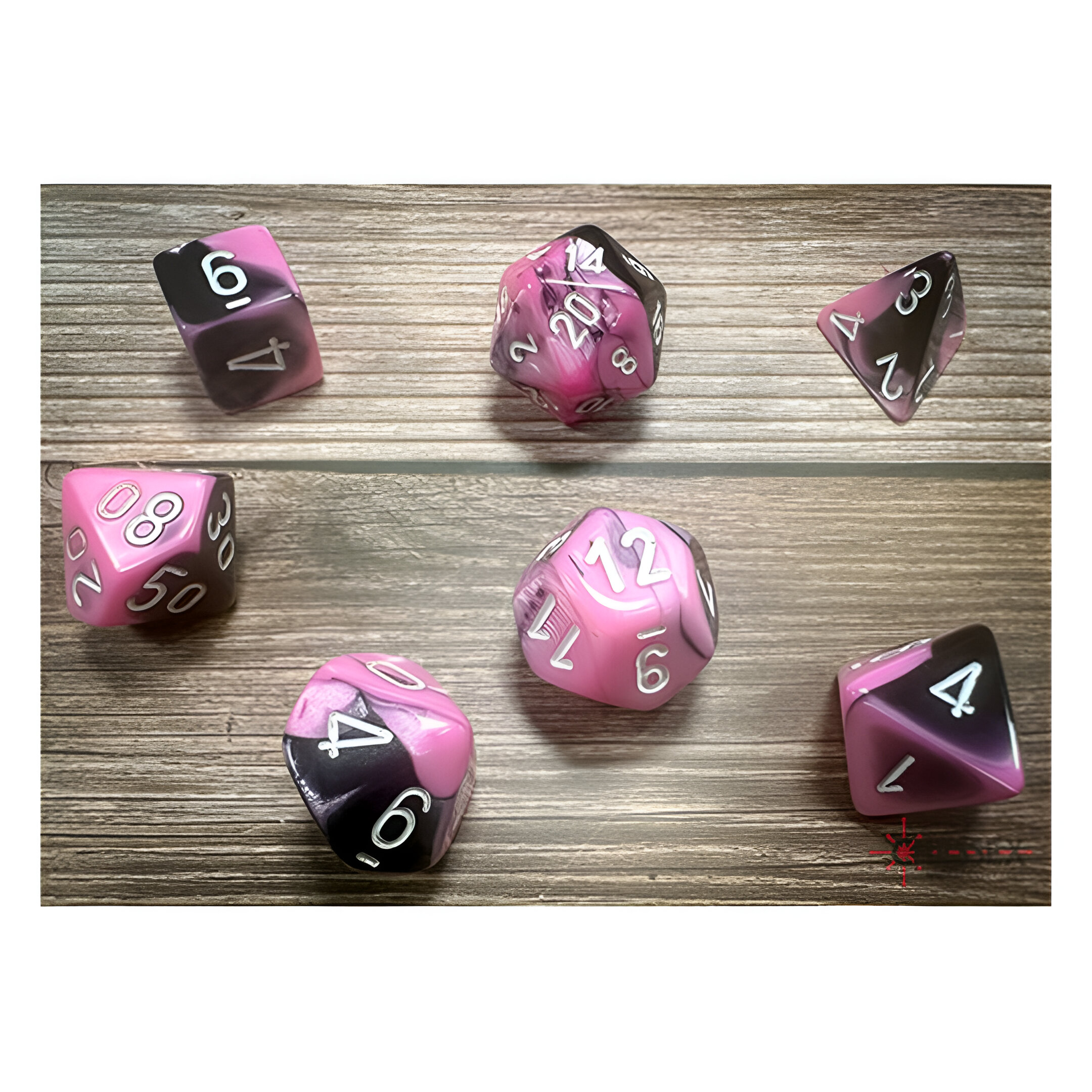 Chessex – Gemini Polyhedral 7 Dice Set – Black-Pink w/White