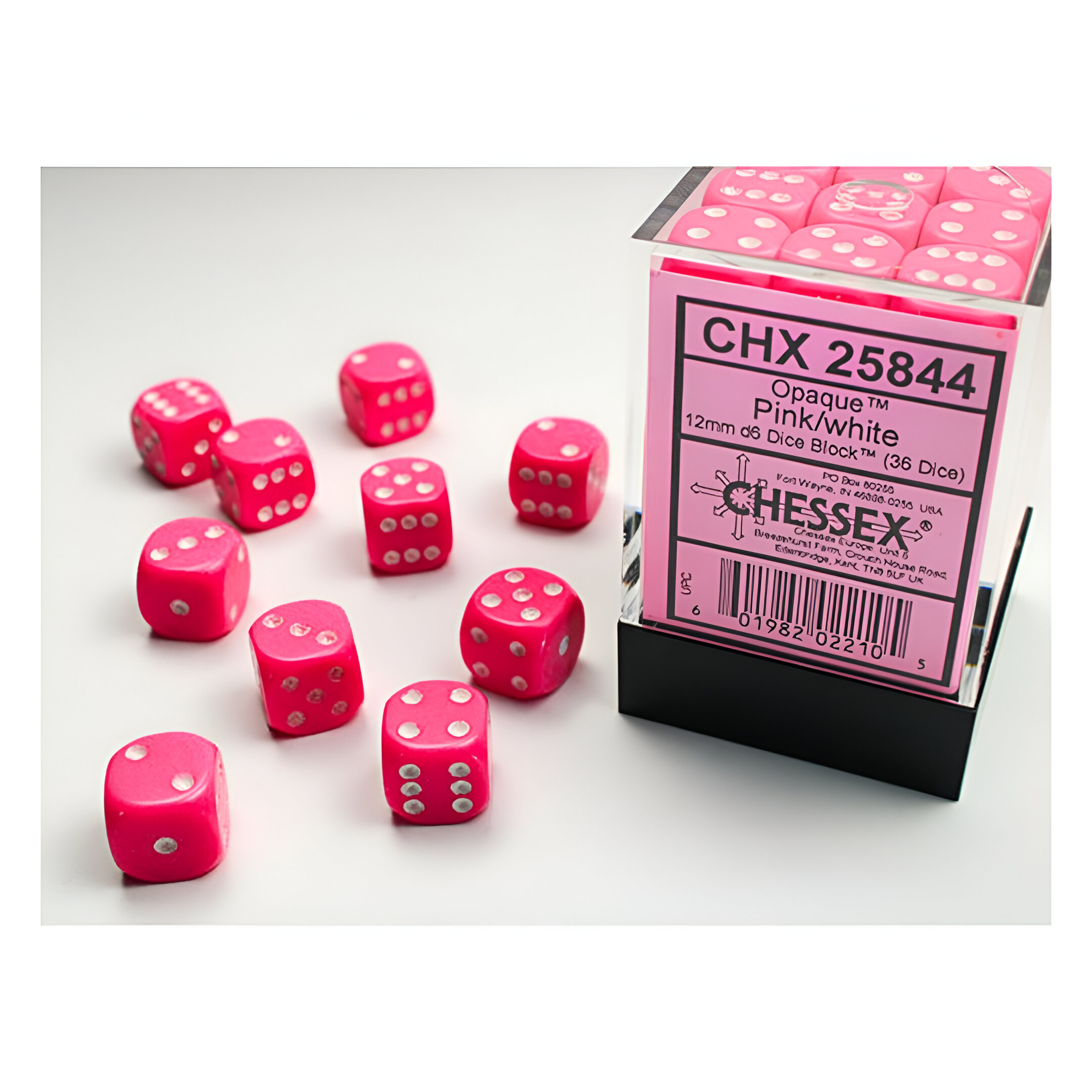 Chessex – Opaque 12mm D6 Dice Block – Pink w/White