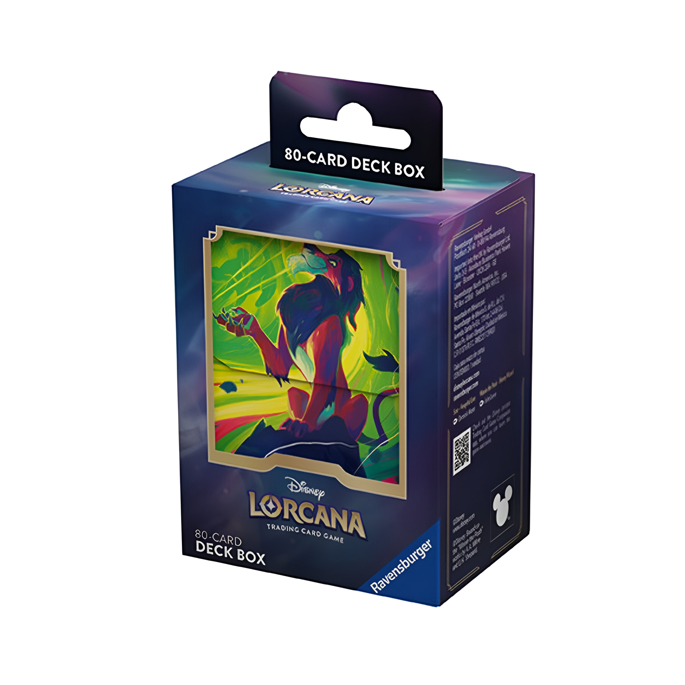 • This Disney Lorcana deck box features vibrant, art of Scar from Disney Lorcana.