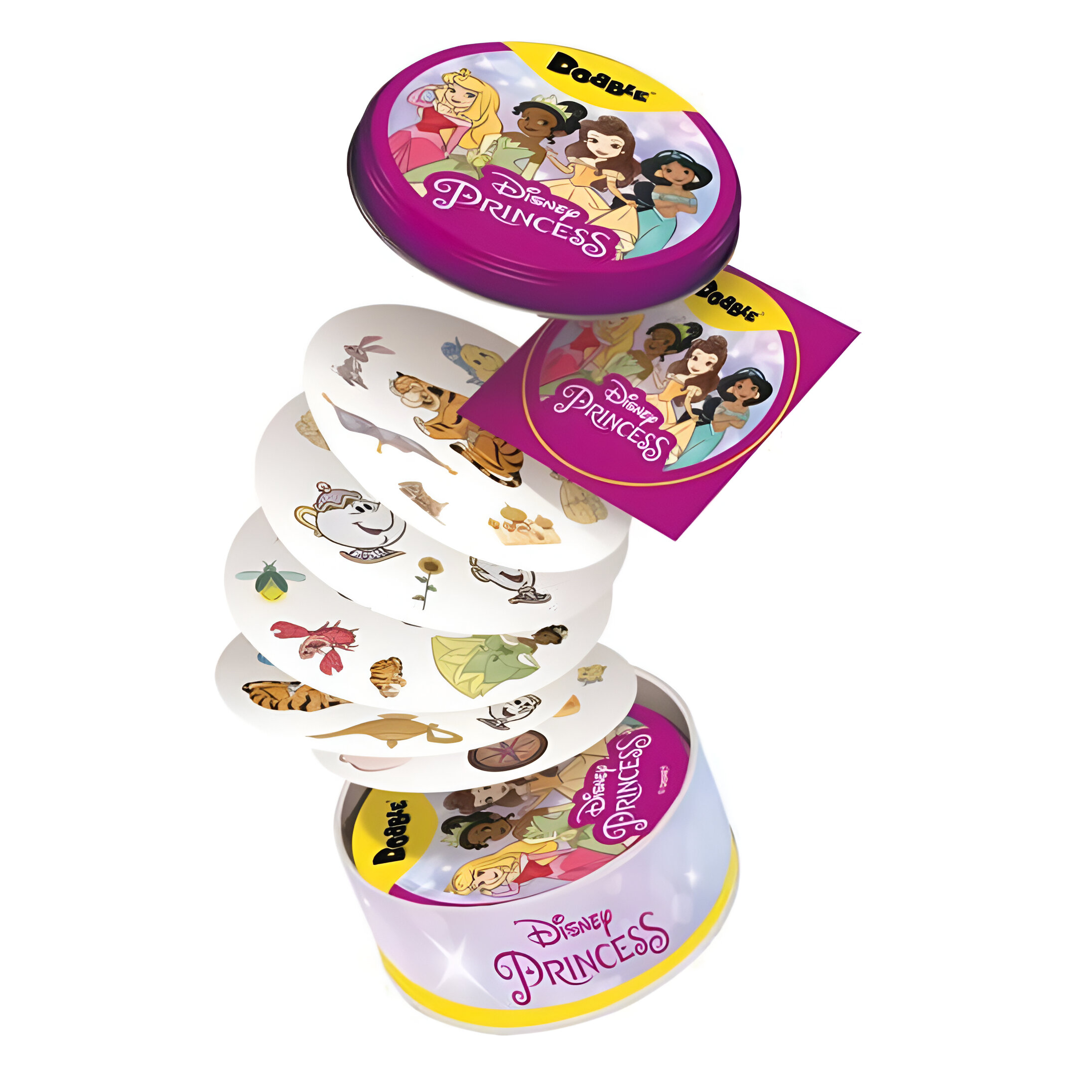 Dobble is a game of observation and quick reflexes for all! Featuring some of the most iconic Disney Princesses – Belle, Tiana, Jasmine, and more!