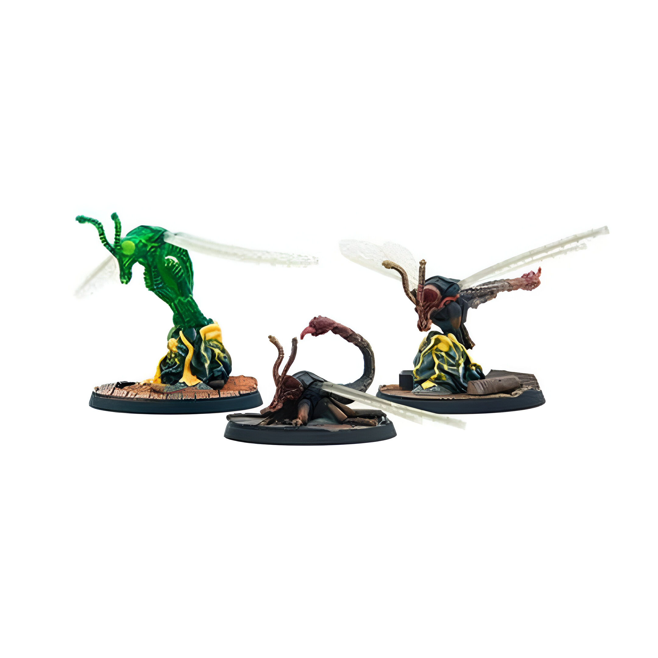 Stingwings are giant, mutated flies, born of the Great War. They are distant cousins to the modern scorpionfly, but much larger, with a vicious sting in their tail. They are relatively fragile, but tend to travel in swarms which can be more than a match for even well armed parties. These beasts are even deadlier when defending their nests, when they exhibit a terrifying level of ferocity. This Fallout: Wasteland Warfare set contains three 32mm scale high-quality multi-part resin miniatures with scenic bases. Requires some assembly. Supplied unpainted.
