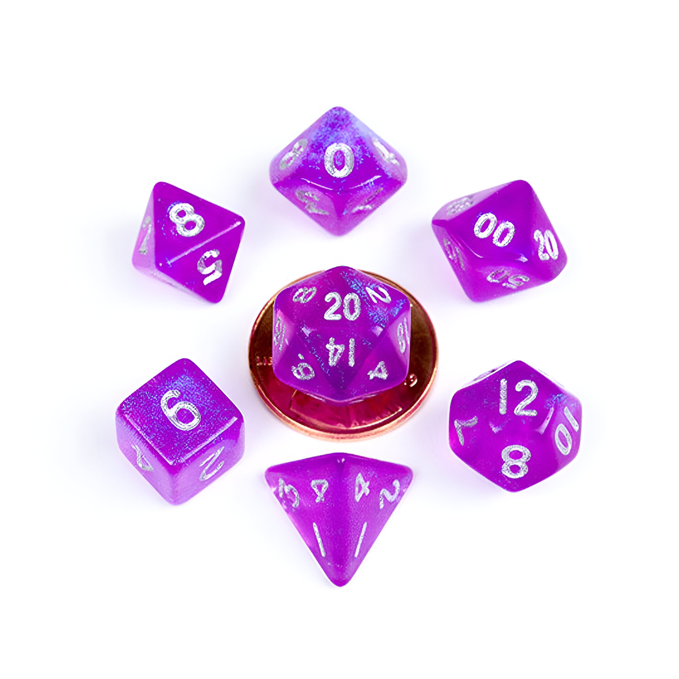 Fanroll – 10mm Mini Polyhedral Dice set – Stardust Purple