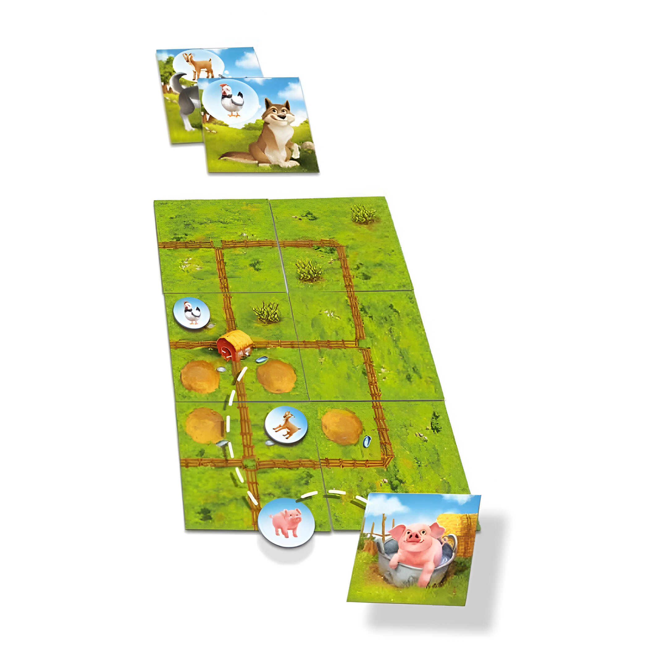 Watch out, the wolf roams and can appear at any time! Will you have the most animals and cornfields at the end?