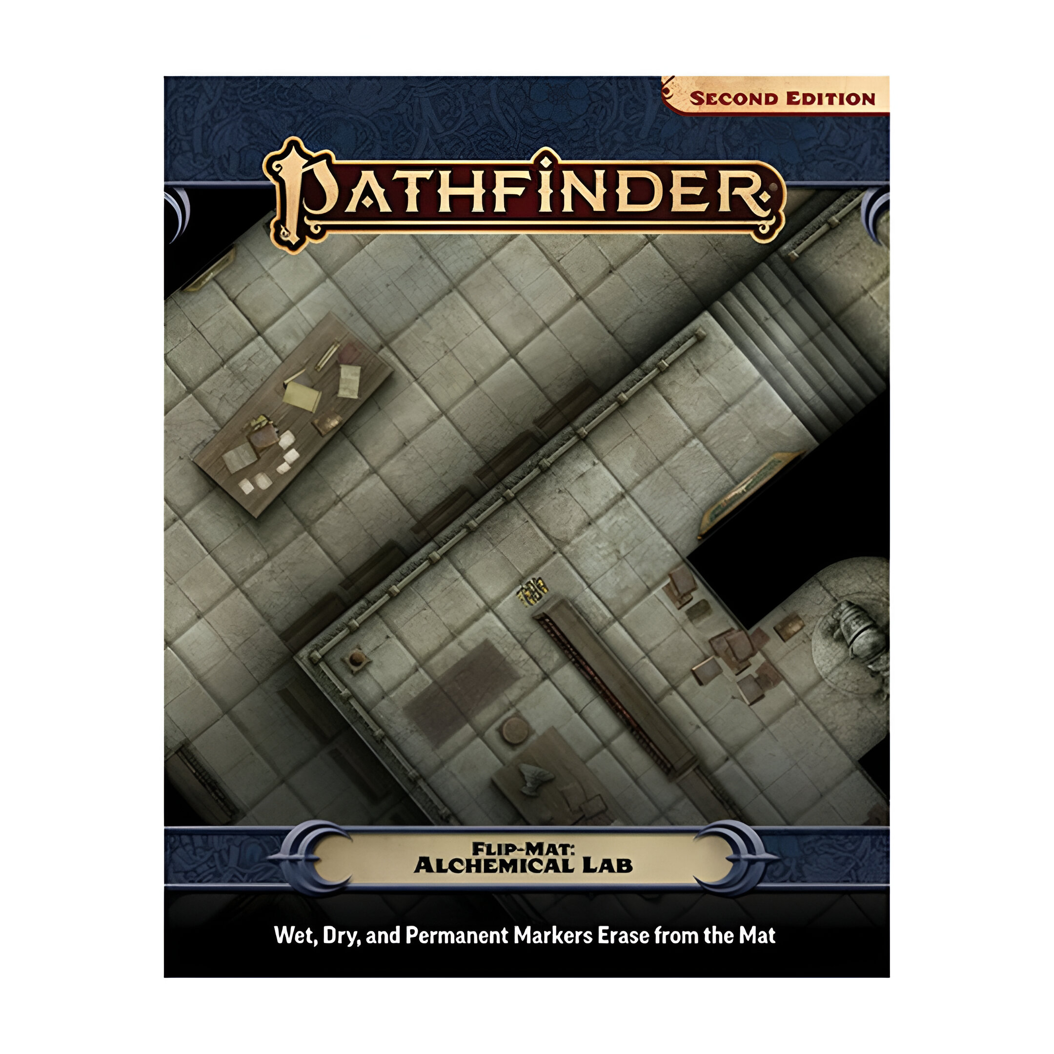 Whether your PCs have a practical home base from which to work or they are tasked with taking down a rogue scientist, Pathfinder Flip-Mat: Alchemical Lab has you covered. This set includes a durable, double-sided Flip-Mat, measuring 24″ × 30″ unfolded and 8″ × 10″ folded. Usable by experienced GMs and novices alike, this Pathfinder Flip-Mat fits perfectly into any Game Master’s arsenal!