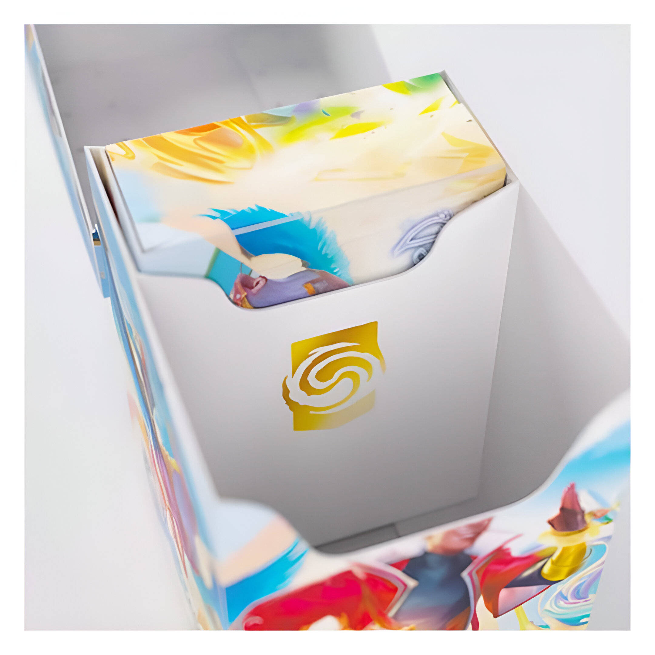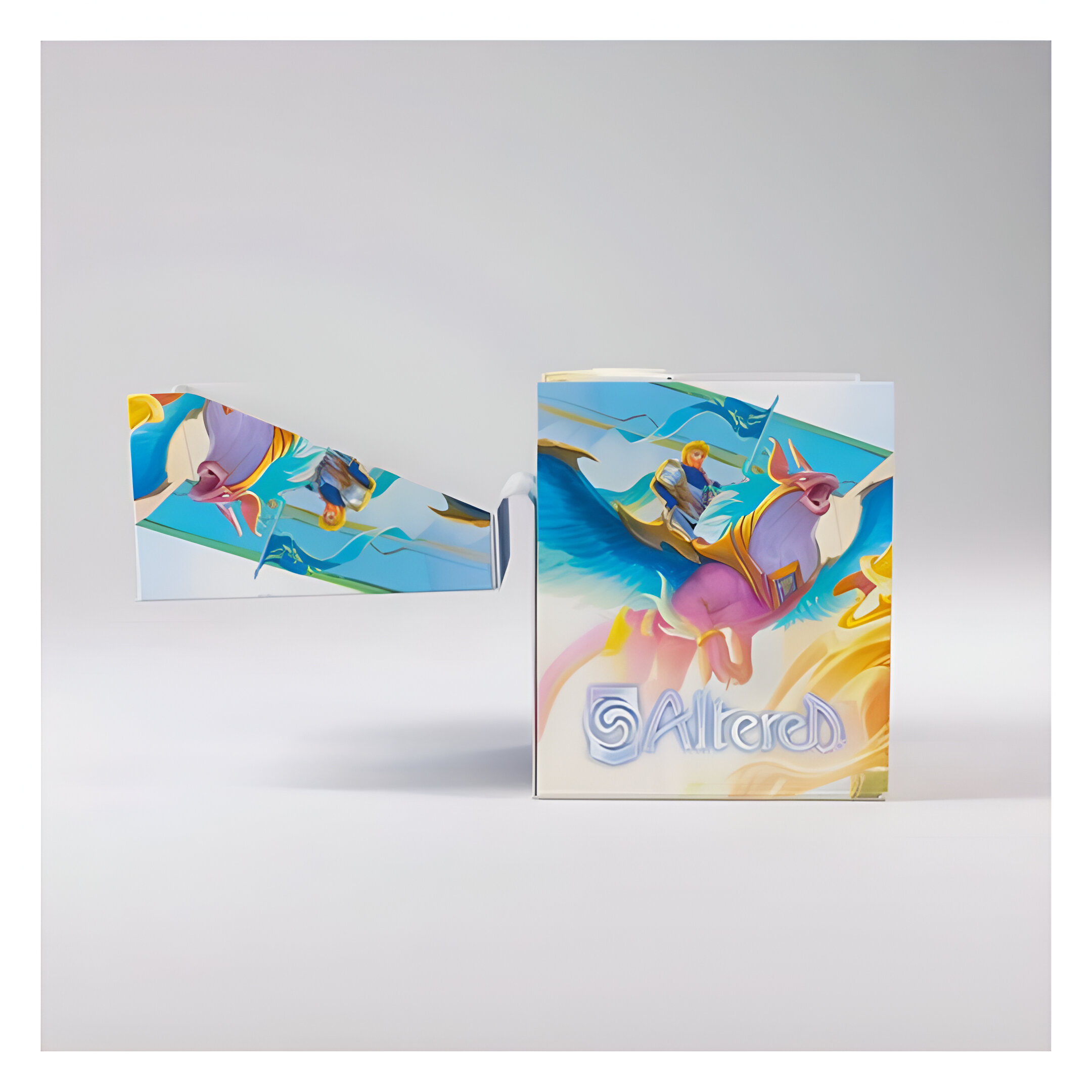 The Altered® Expedition Soft Box is the all-in-one casual solution for players of the highly awaited TCG. This full color printed and officially licensed deck box is packed with ingenious features. It protects a full double-sleeved deck of cards and includes an innovative token box! This token box has a smart click-lock mechanism to keep all tokens safely stored – even while pulling it out. Once opened, the lid of the box stays upright for convenient access during gameplay. The Expedition Soft Box is equipped with Gamegenic’s very own Cobra Neck-Technology: the lid can be opened more than 180° for easy access. Additionally, it comes with a self-locking lid and write-on-strip. The separator inside ensures that the deck stays in place, even when the token box is taken out. The Altered® Expedition Soft Box comes in two amazing designs from the game and is a must-have for all Altered®, TCG, and LCG players.