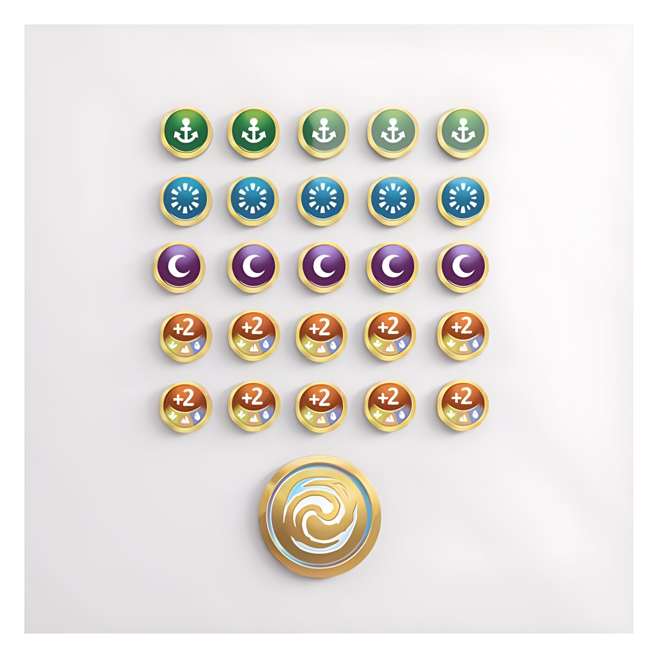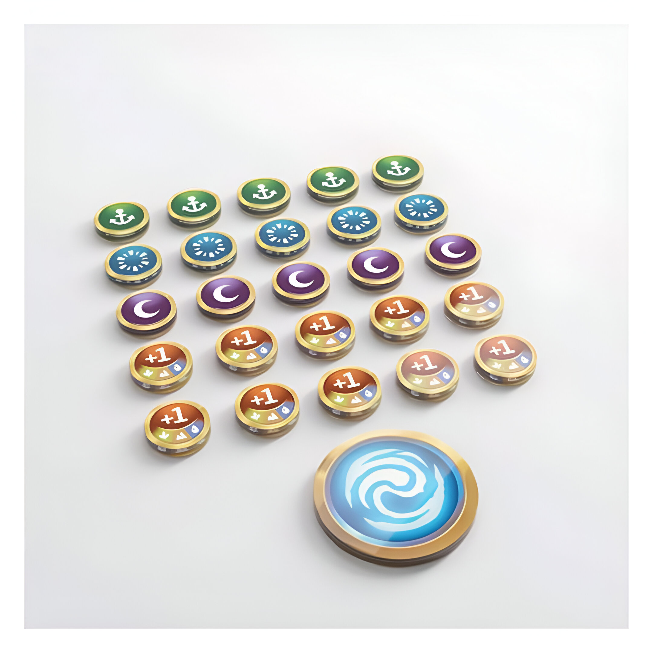 These officially licensed acrylic Premium Markers are designed to enrich gamers’ experience by bringing the Altered® look and feel to the gaming table! One marker set comes with 26 individual pieces, more than in the original game. Including: 1x First Player marker, 5x Anchored marker, 5x Fleeting marker, 5x Asleep marker, and 10x double-sided Boost marker (+1/+2). The Premium Markers are perfect for all enthusiastic players of Altered®.