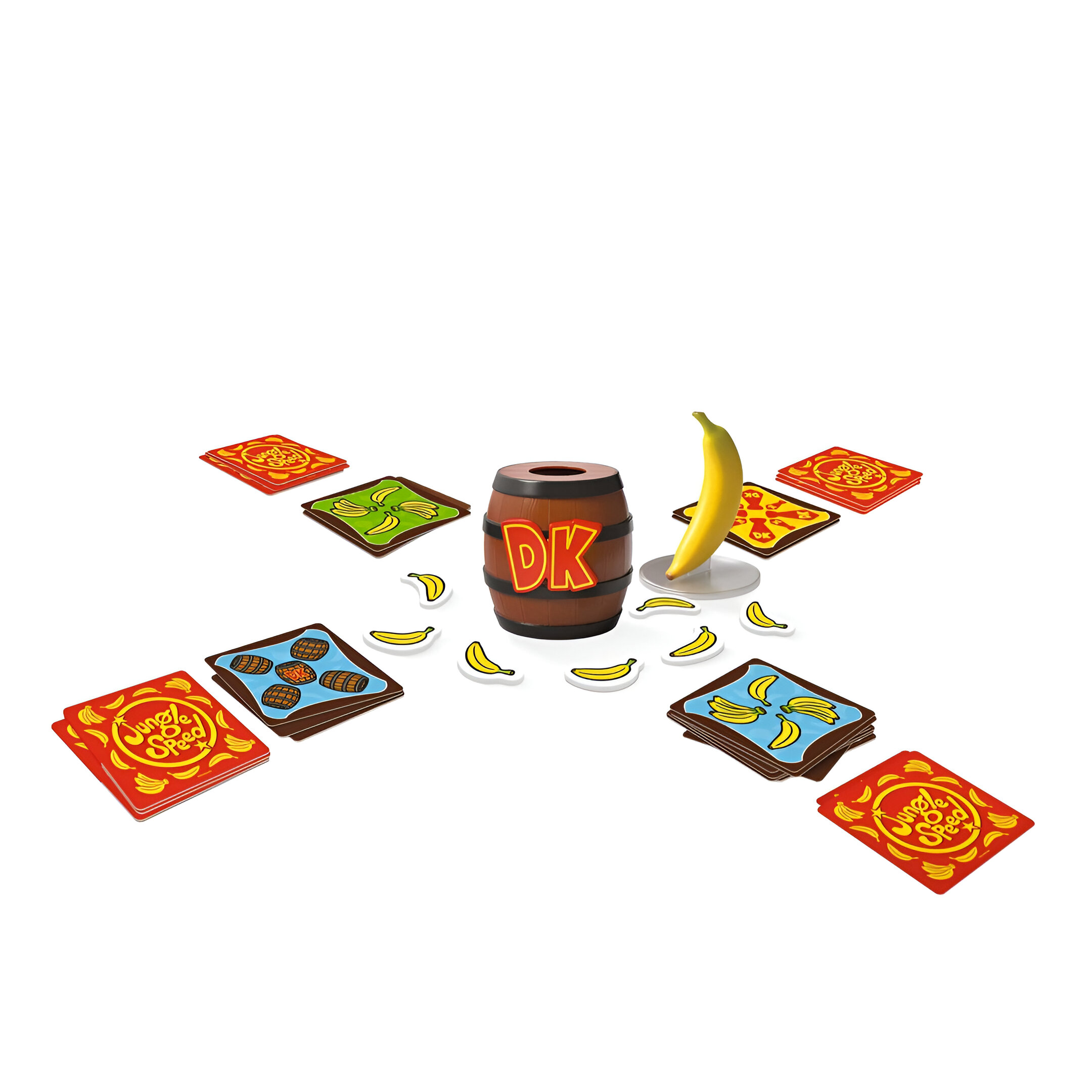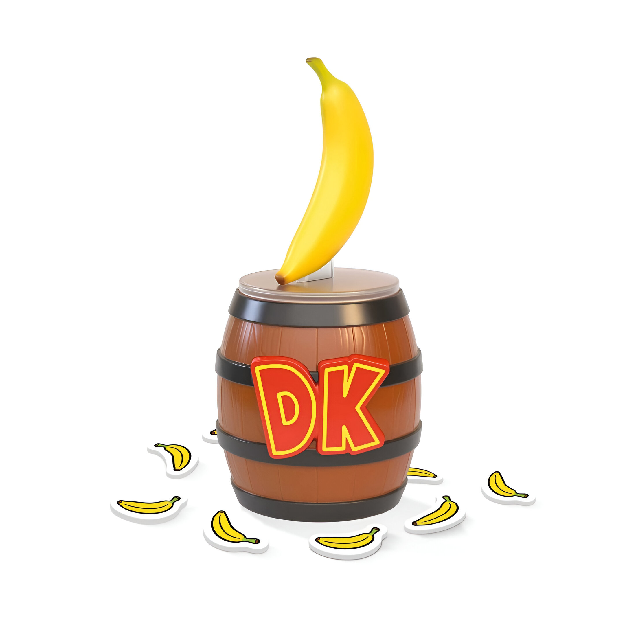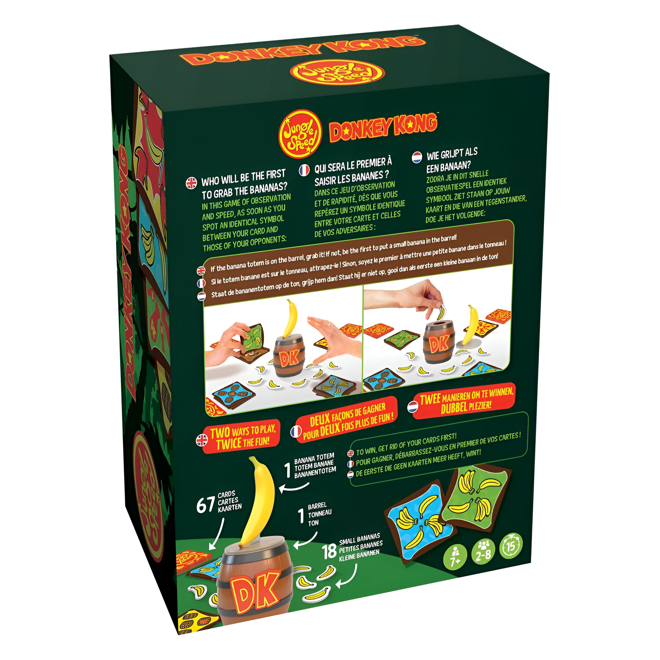 Who will be the first to grab the bananas? In this game of observation and speed, as soon as you spot an identical symbol between your card and those of your opponents: If the banana totem is on the barrel, grab it! If not, be the first to put a small banana in the barrel!