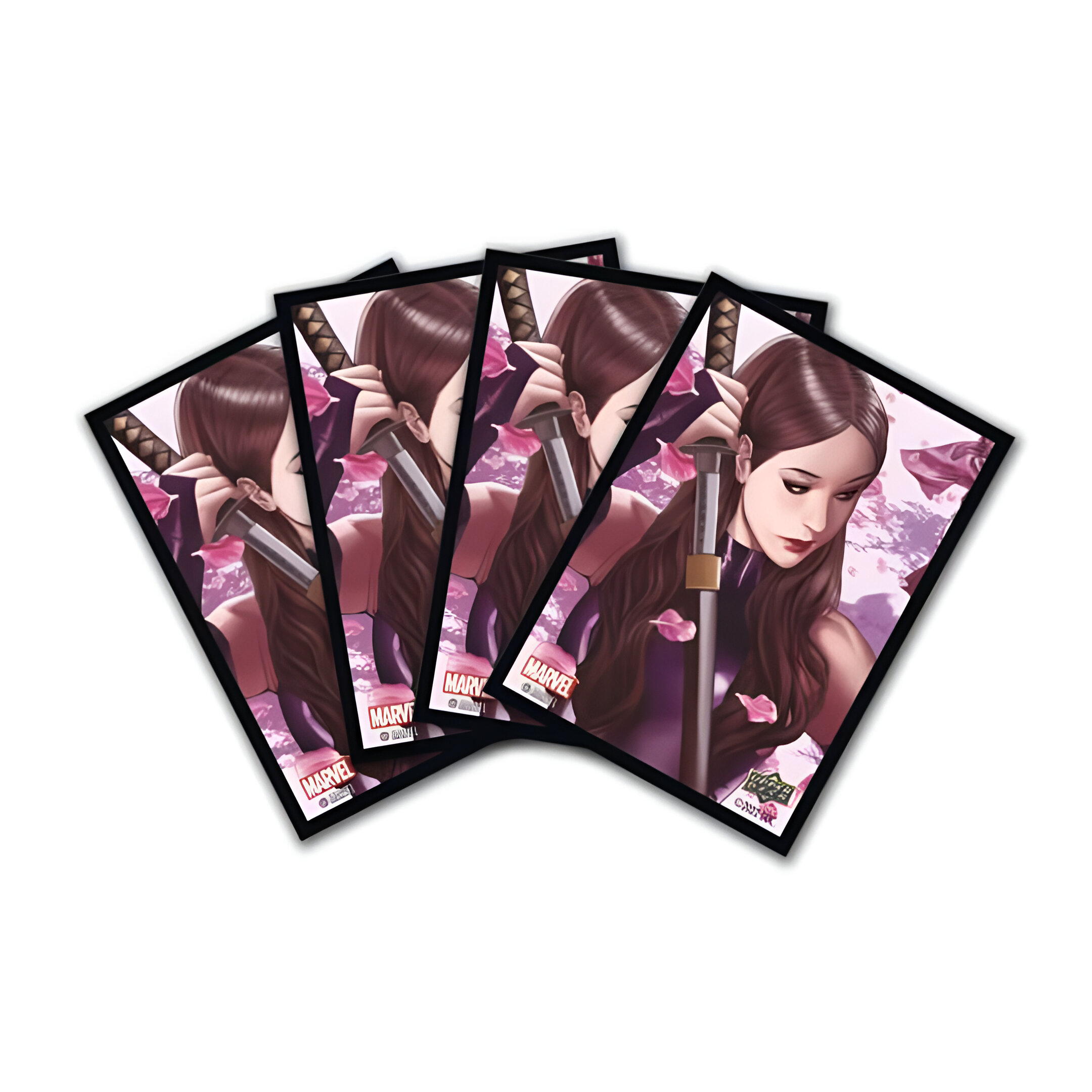The Marvel Psylocke Sleeves (65 Count) are 67mm x 92mm, which will fit standard sized cards. Each pack of sleeves contains 65 card sleeves. These sleeves are non-game specific and can be used with any game. These sleeves are limited edition.