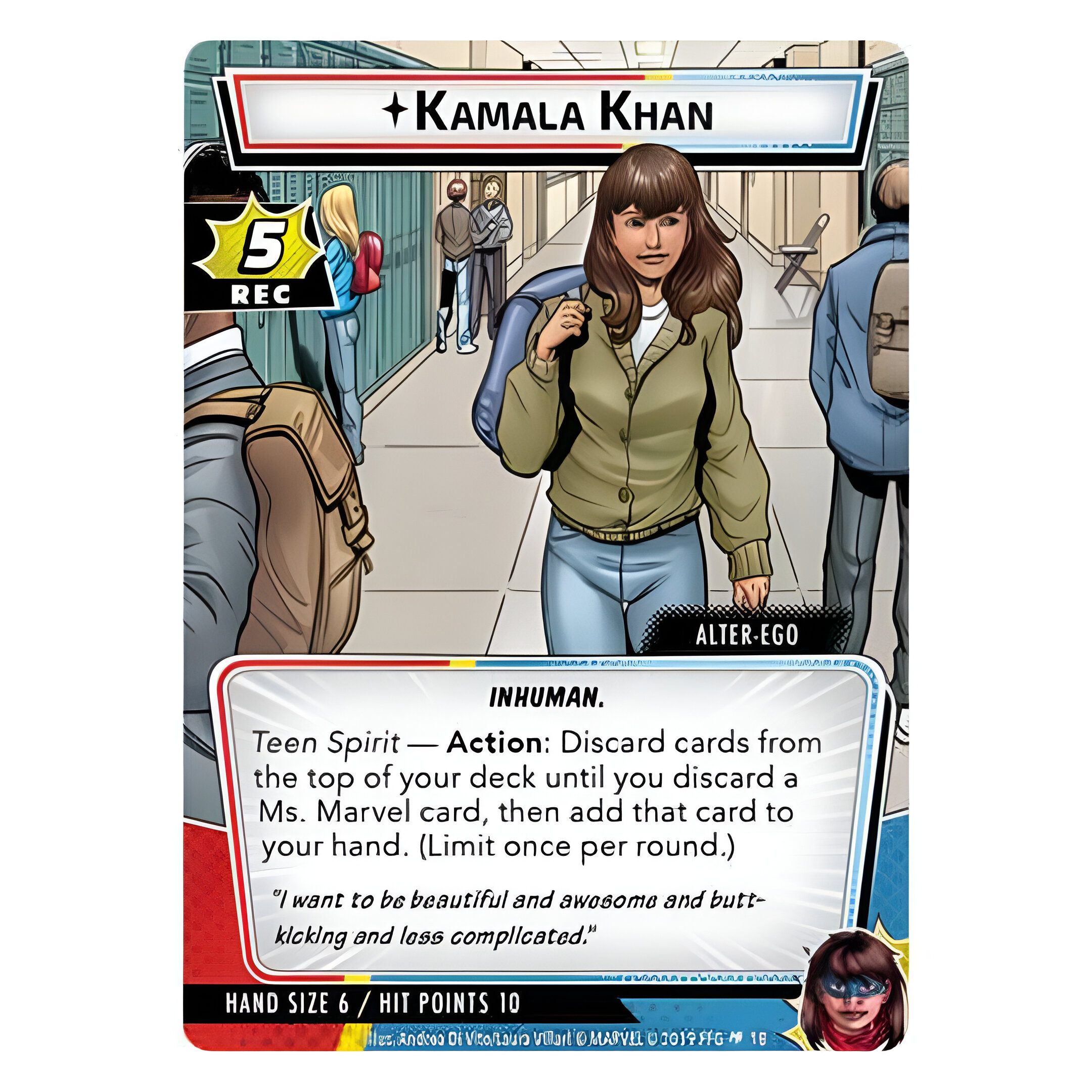 Embody one of the most flexible heroes in the Marvel Universe with a fully playable hero deck for Marvel Champions: The Card Game! After being trapped in Terrigen Mist, Kamala Khan discovered she could morph her body into nearly any shape. Learn to harness her powers to save the day!