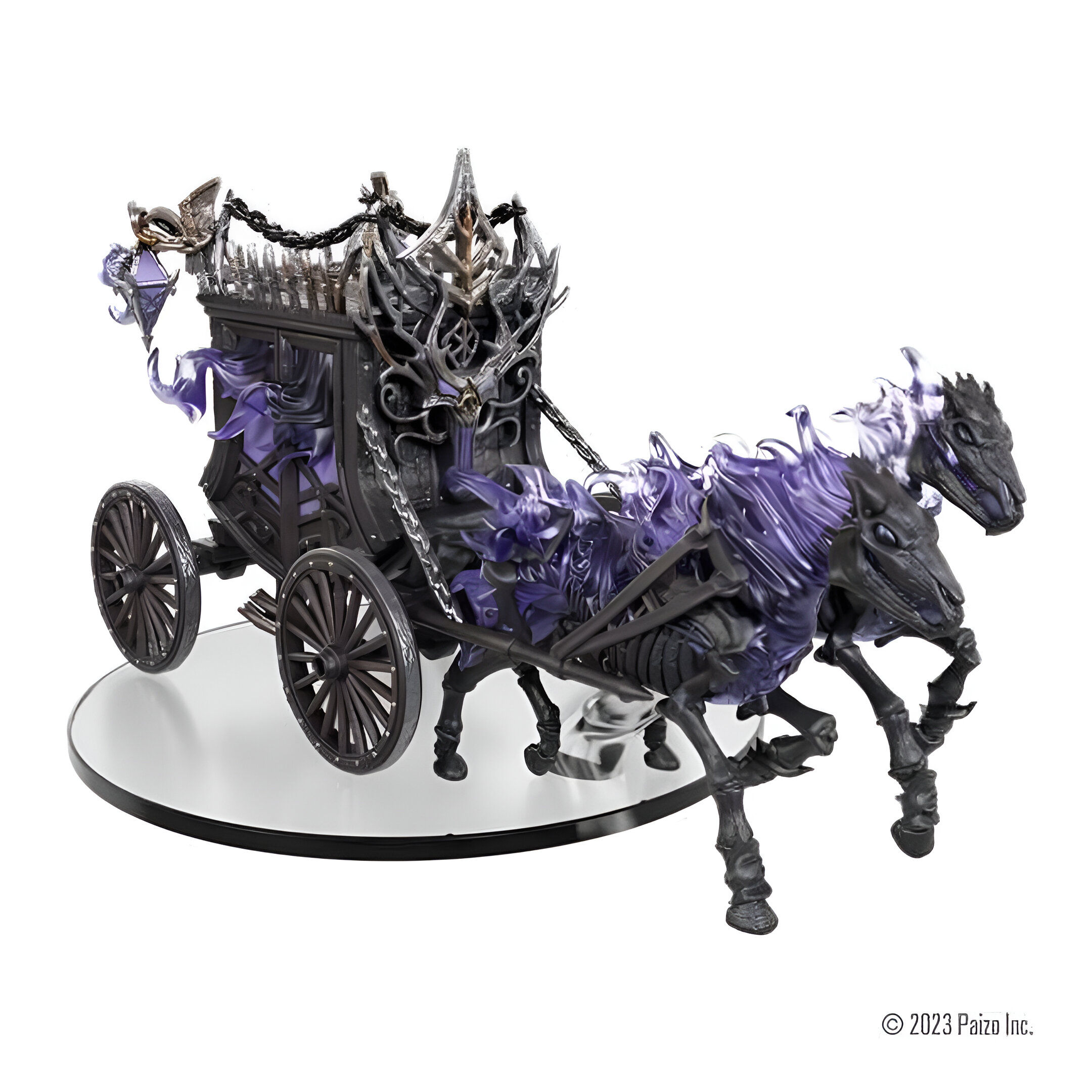 This huge boxed miniature is the phantasmal Death Coach—a terrifying roving undead that captures unwilling mortal souls for transport to the Boneyard and isn’t afraid to remove them from the living by force if necessary. The Death Coach tabletop foe features glow-in-the-dark details and will make a unique addition to any miniature collection.