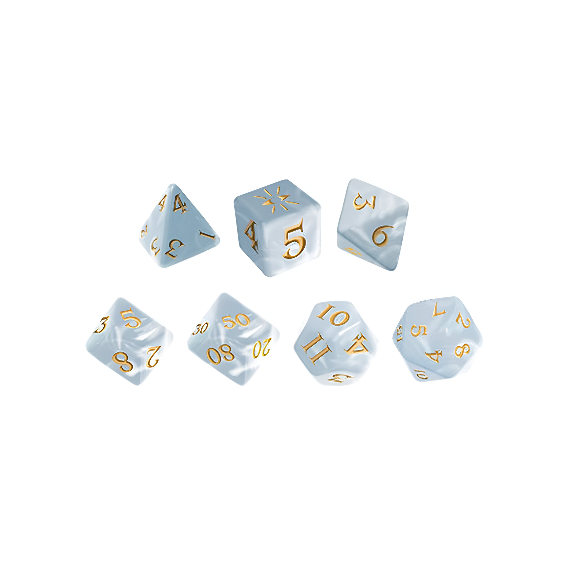 • Uniquely styled Sisterhood dice let the table know where your allegiances lie. Angel Dice bring a grandiose style to the table, with their evocative gold and cloudy finish.