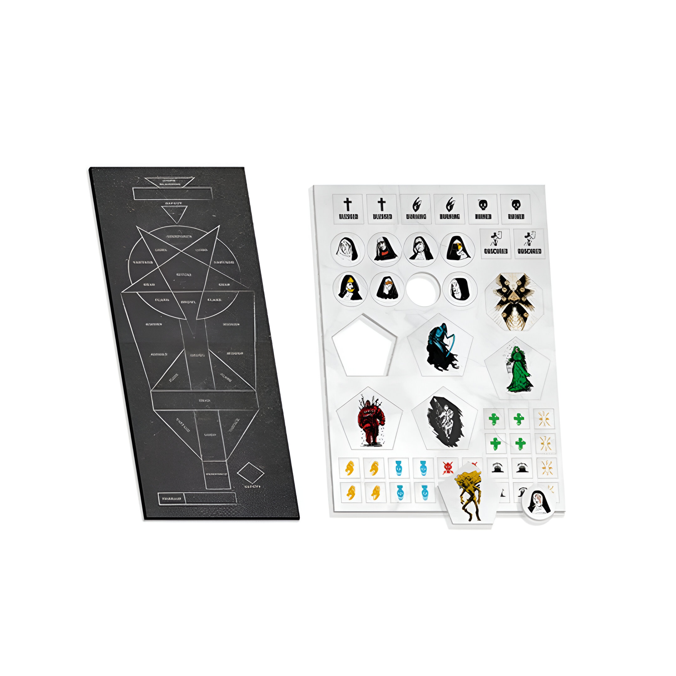 This Kit comes with a token sheet filled with representatives of all the enemies of the Sisterhood – from the Horsemen to the rebellious Angels, and all their eager cultists.