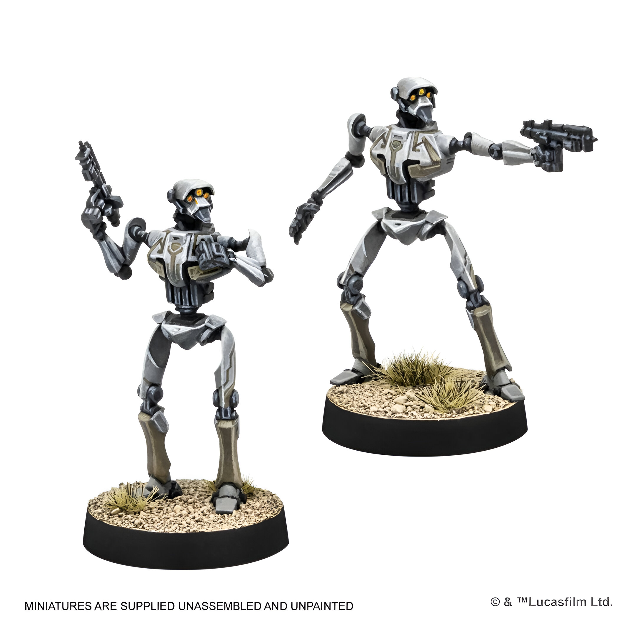 This Unit Expansion includes 2 Super Tactical Droid miniatures usable by Separatist Alliance armies. This is a re-issue product, previously SWL86, now SWQ38, which brings the Super Tactical Droids to the refreshed Star WarsTM: Legion. This refreshed product includes new stylized packaging, updated gameplay cards to the SWQ multi-lingual format and the miniatures to hard-plastic material.