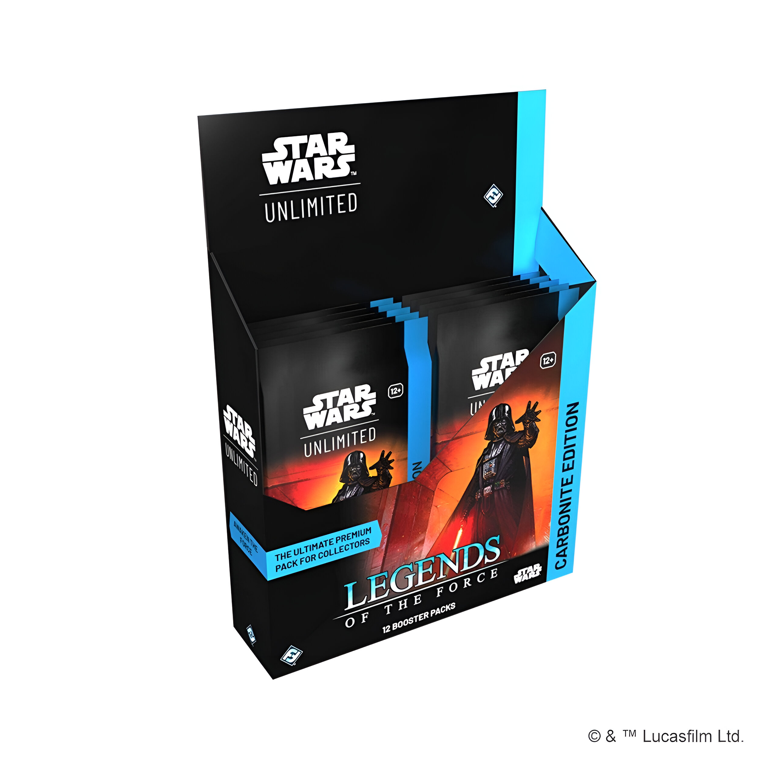 Enhance your Star Wars™: Unlimited collection with a special Carbonite booster pack! These special premium packs are loaded with variant cards with special aesthetic treatments, making them the perfect packs for collectors. In this Carbonite booster pack display for the game’s fifth set, Legends of the Force, you’ll find 12 individually wrapped Carbonite booster packs. Each pack contains approximately: 1 Hyperspace/Showcase leader card, 6 premium foil cards, 1 foil rare or legendary card, 1 Carbonite-exclusive Prestige card, 4 Hyperspace cards, 1 Hyperspace rare or legendary card, and 2 Hyperspace foil cards. The Legends of the Force set features characters and content from multiple eras in the Star Wars galaxy, with a particular focus on Force users, such as Jedi, Sith, and more. Carbonite booster packs are limited in quantity and are designed to enhance the collections of diehard fans. They will not be reprinted.
