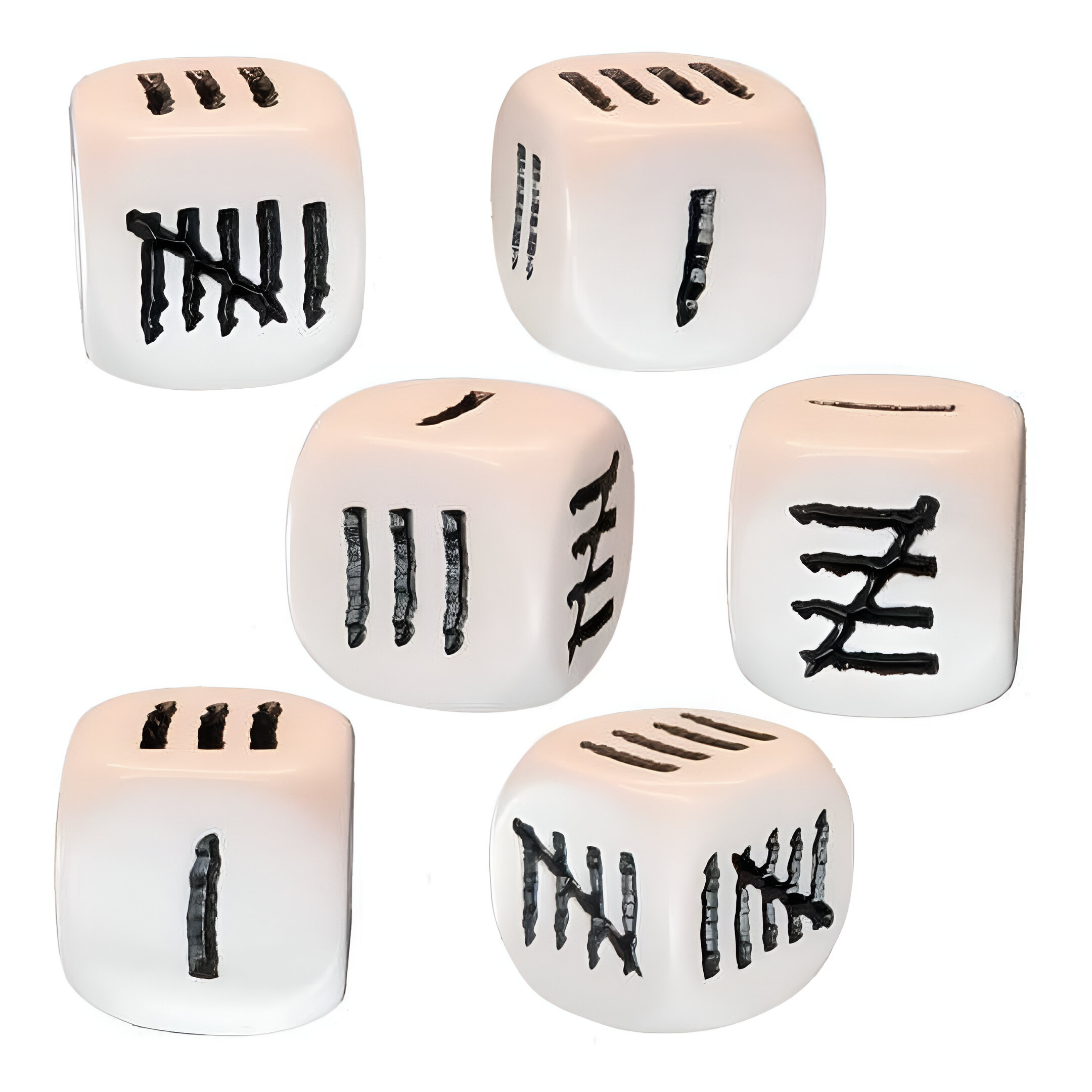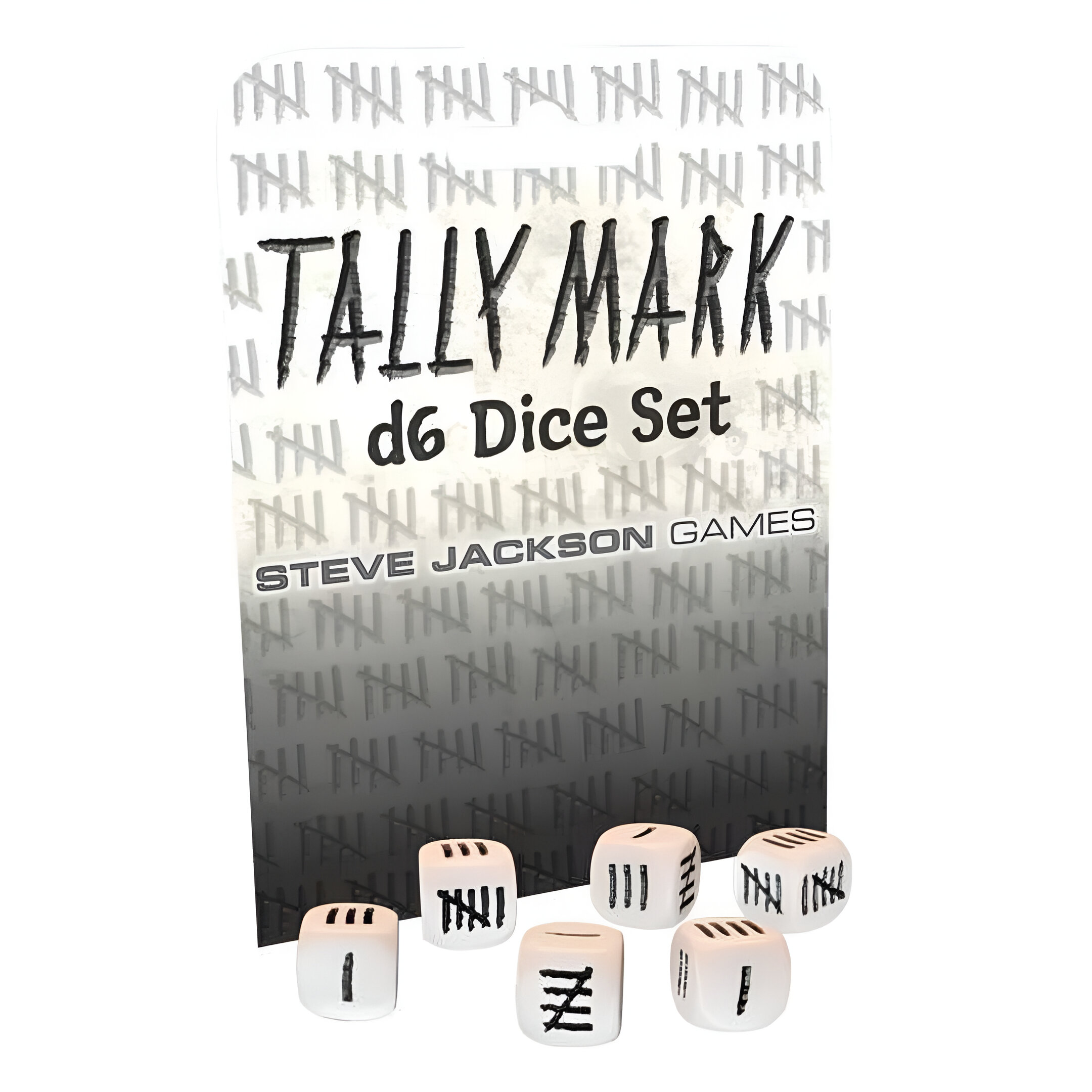 What will you tally with the Tally Mark d6 Dice Set? Dragons slain? Monarchs overthrown? Perhaps Orc lords vanquished, or all the times the rogue betrayed you? So many things to count . . . Or you could just use them in place of standard d6 to add some flair to any game! (That would be safer.)