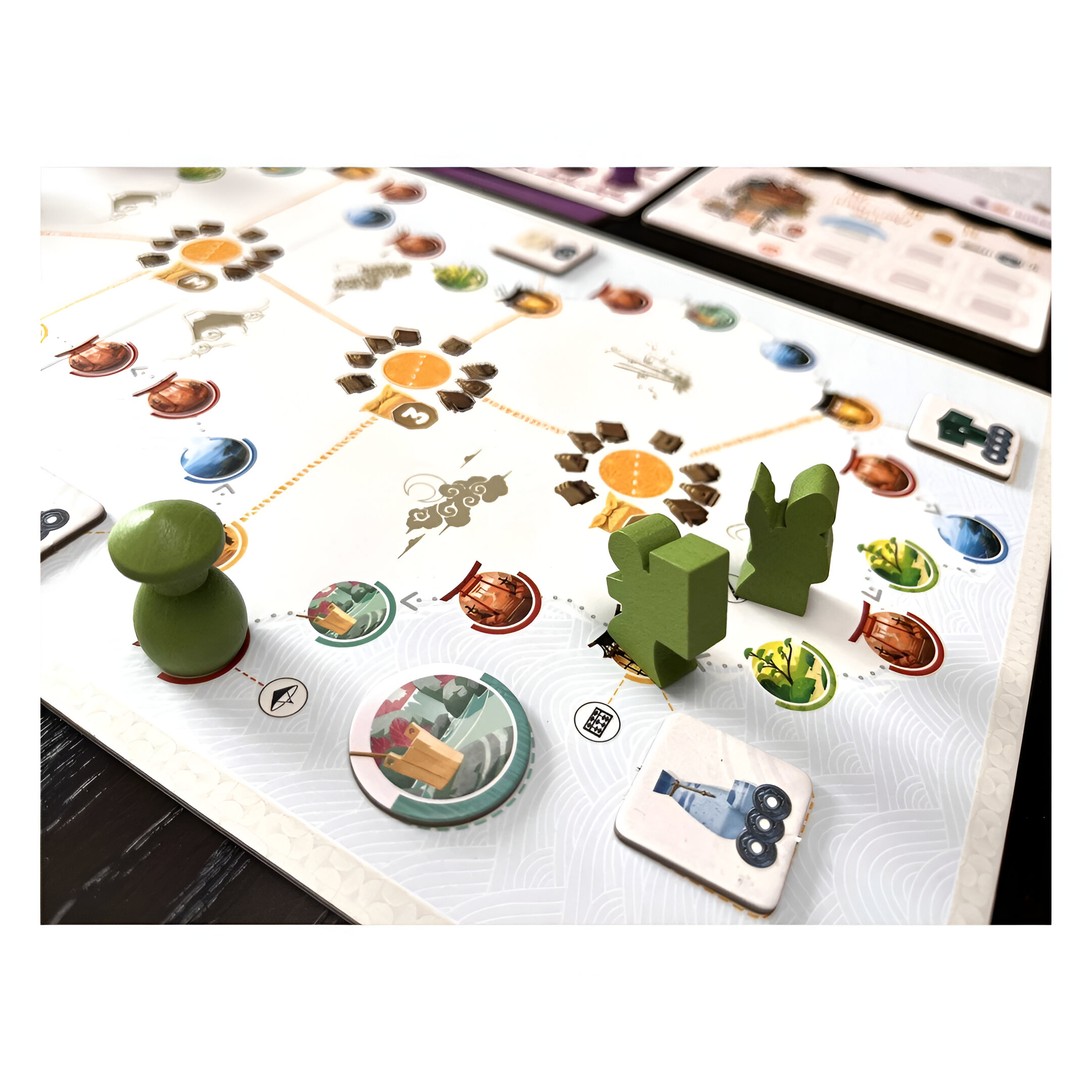In Tokaido Duo, two players discover the smallest of Japan’s four main islands through a three-faceted spiritual journey. As the pilgrim, visit shrines, gardens, seashores, and hot springs. As the merchant, collect and sell traditional souvenirs. As the artist, paint a variety of beautiful vistas, and gift your paintings to locals. Gain points through each character’s discoveries, and live each journey to the fullest. If you do, your trek will grow into a life-changing experience!