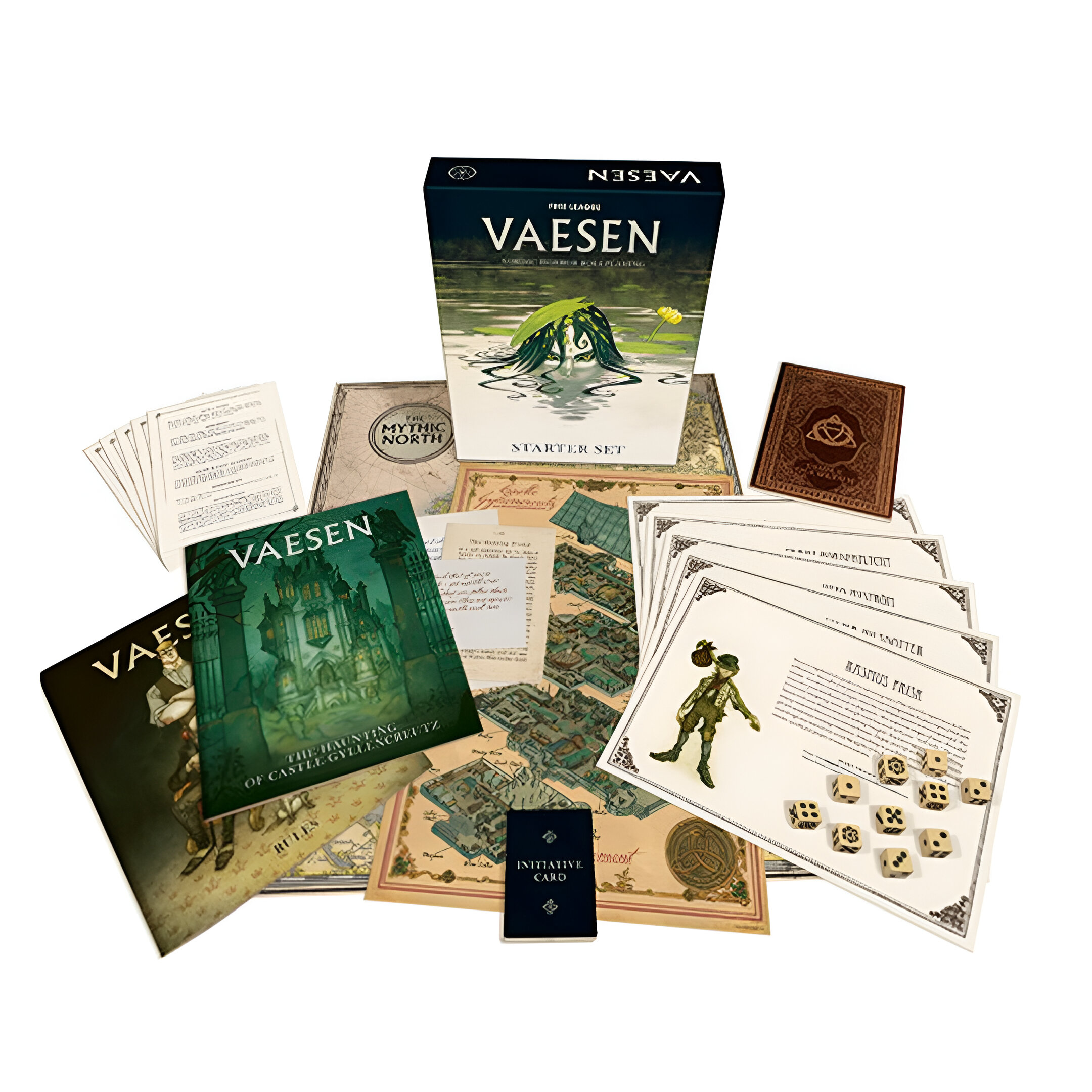 • The Vaesen – Nordic Horror Roleplaying Starter Set offers players an entry level RPG product with a set of condensed rules for action skill tests, combat, damage, and fear.